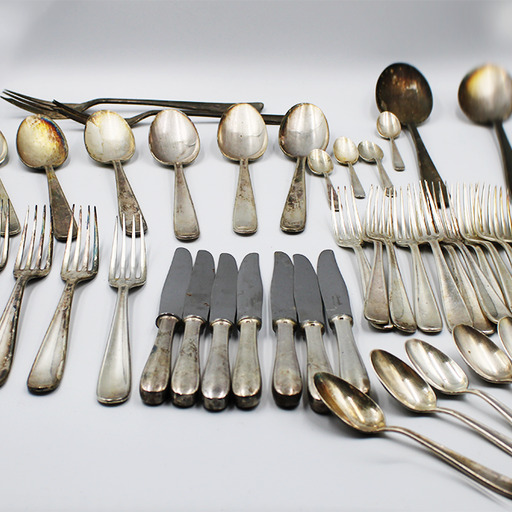 Cutlery Set: Ladle I: 1 Ladle II: 1 Serving Fork: 2 Soup Spoon: 6 Meat Forks: 6 Dessert Forks: 11 Knives: 7 Dessert Spoon: 3 Dessert Teaspoon: 7 Coffee Spoon: 4