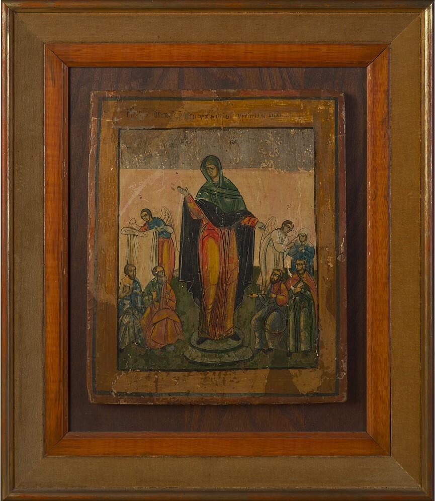 Icono ruso que representa a la Madre de Dios y la consolación de los afligidos. La Protección de Nuestra Santísima Señora Theotokos y siempre Virgen María, o simplemente, la Protección de la Madre de Dios, conocida en el eslavo eclesiástico como Pokrov (П,о,к,р,о,в,ъ,, "protección") y en griego como Skepê (&Sigma,&kappa,έ,&pi,&eta,), es una festividad de la Virgen María celebrada en la Iglesia ortodoxa y en las Iglesias orientales católicas. La festividad celebra la protección proporcionada a los fieles a través de la intercesión de la Theotokos (la Madre de Dios). Se trata de una de las festividades más importantes en el año litúrgico de la Iglesia ortodoxa rusa. En Rusia se trata de la solemnidad más importante tras la Resurrección de Jesús y las Doce Grandes Fiestas de la Iglesia Ortodoxa. La festividad se celebra conjuntamente en todas las Iglesias Ortodoxas, pero donde se celebra con más fervor es en Rusia y Ucrania.