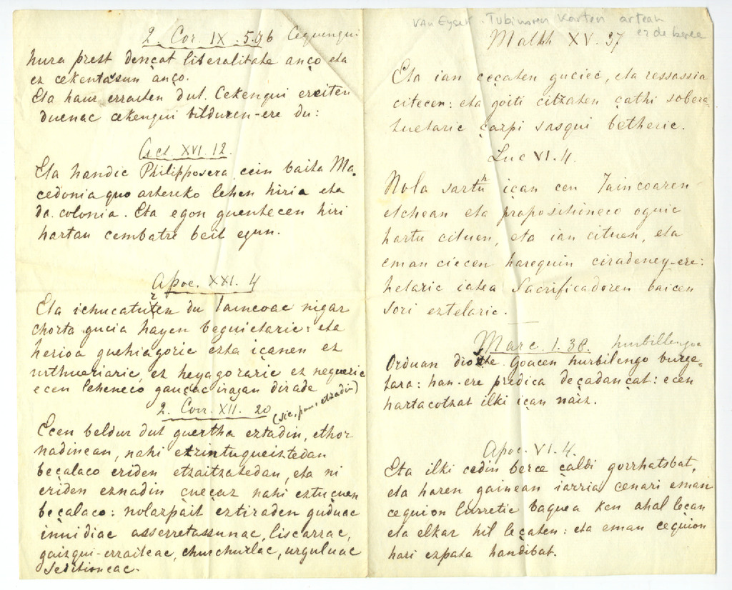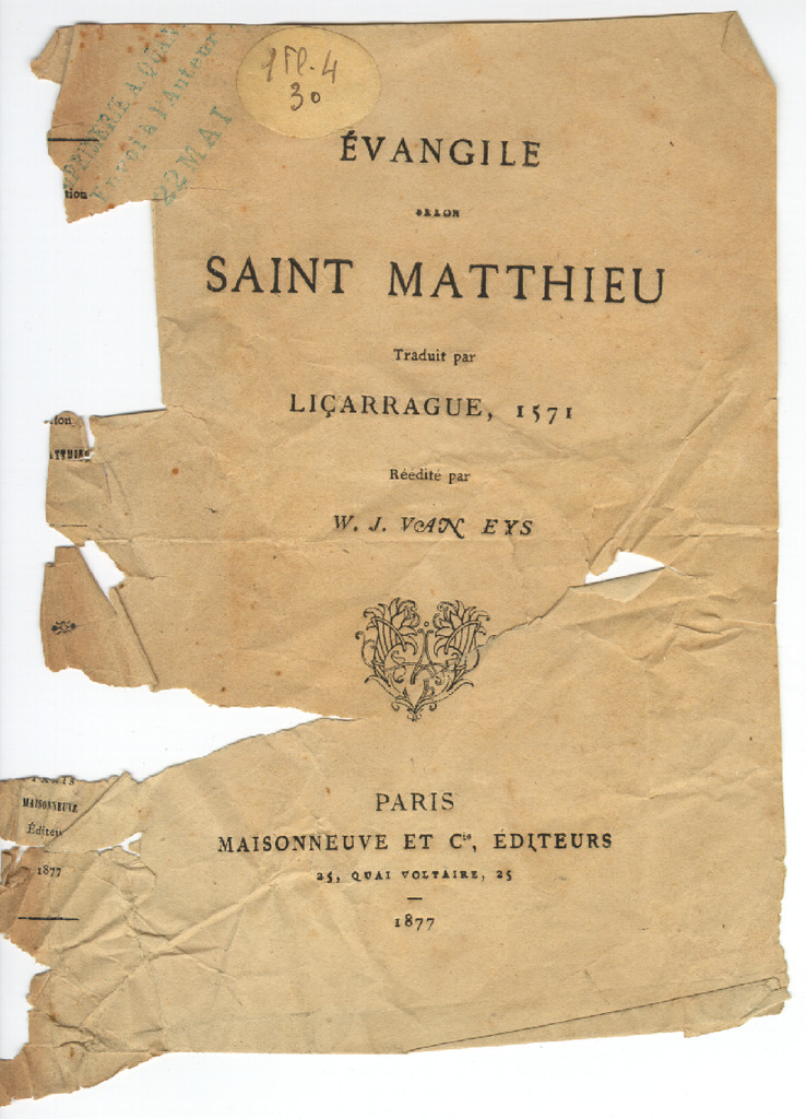 70. EYS, W. J. van - Évangile selon Saint Matthieu: 2. Eskuizkribua (1875) (lehen 15 orrialdeen faltan)