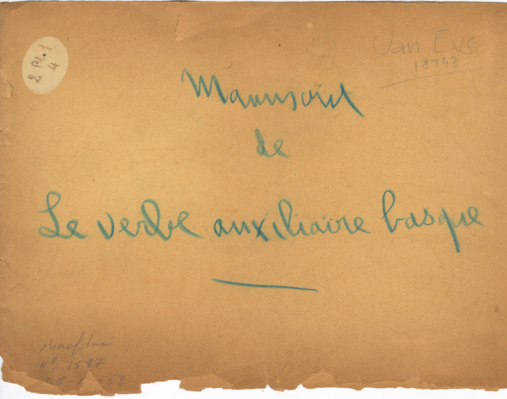80. EYS, W. J. van - Le verbe basque (inp. esk. ohar.)