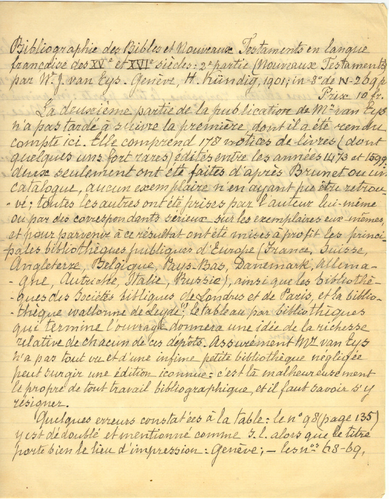 89. EYS, Mathilde van - Bibliographie des Bibles et Nouveaux Testaments en langue francaise des XV et XVI. siecles par W.J. van Eys (1902)