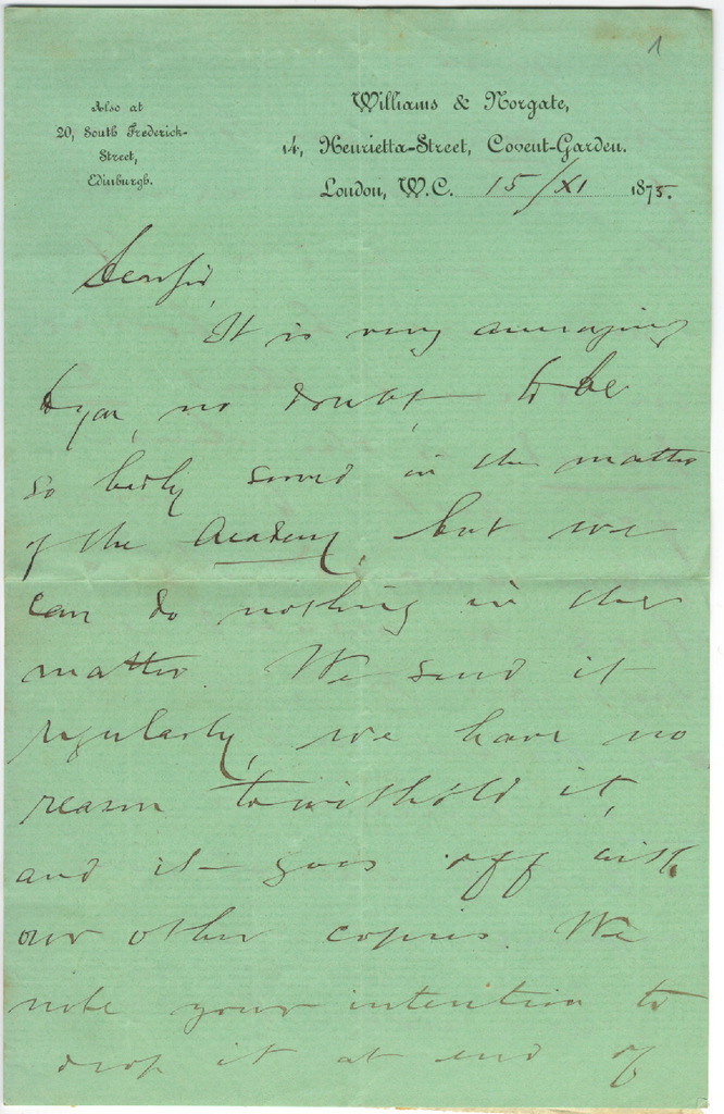 46. WILLIAMS & NORGATE Inpr. - W.J. van Eys-i 1875-1879