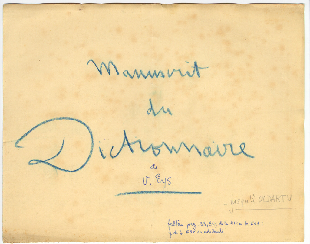 54. EYS, W. J. van - Dictionnaire basque-francais (azken idazkera , orrien faltan)