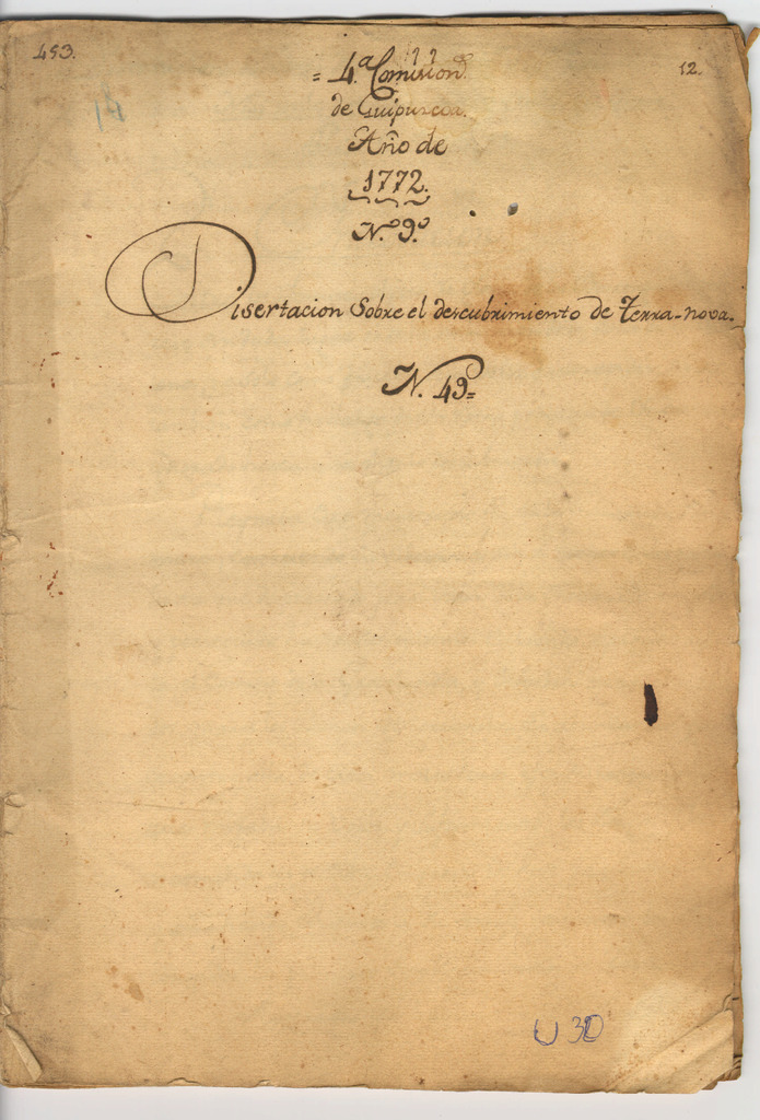 36. 1772. 4ª Comisión de Guipuzcoa n° 9. Disertación sobre el descubrimiento de Terranoba