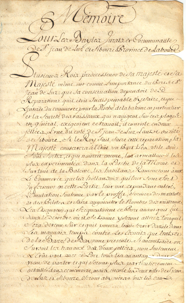 34. 1740. Donibane-Lohizune eta Ziburuko aginteen memoria, balearen arrantzarako beharrezko diren instalazioetaz