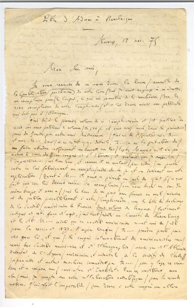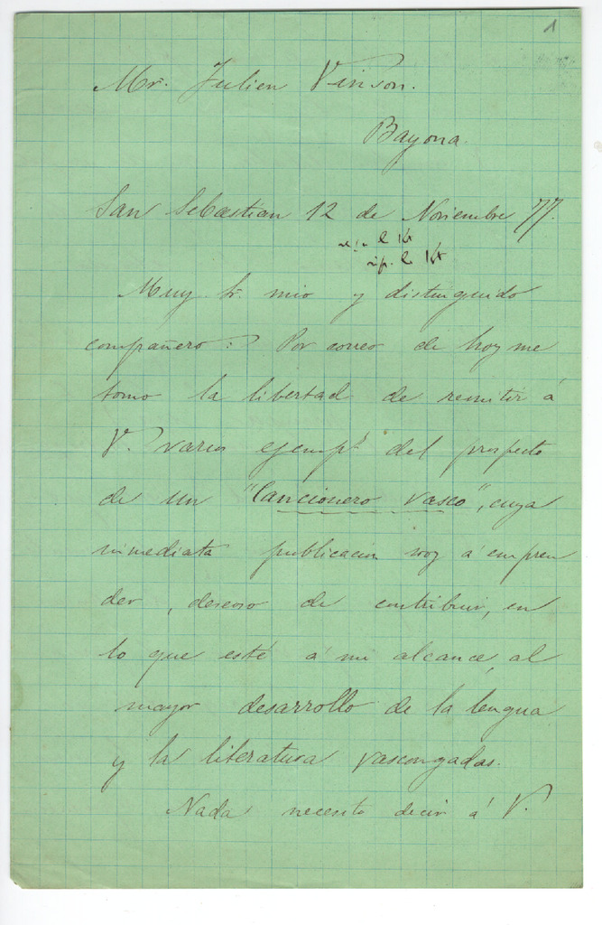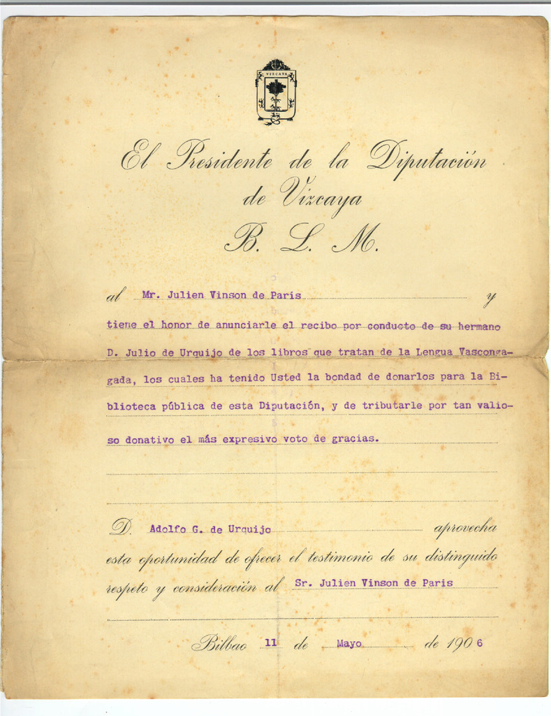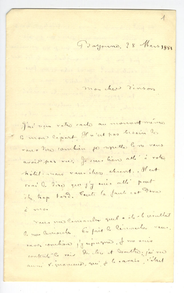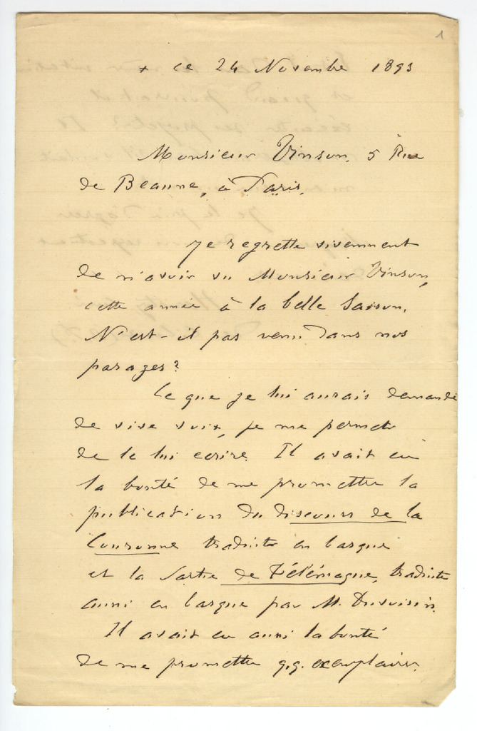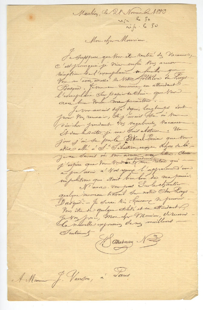 51. VINSON, Julien - Lucien Adan-ek zuzendutako gutun baten kopia