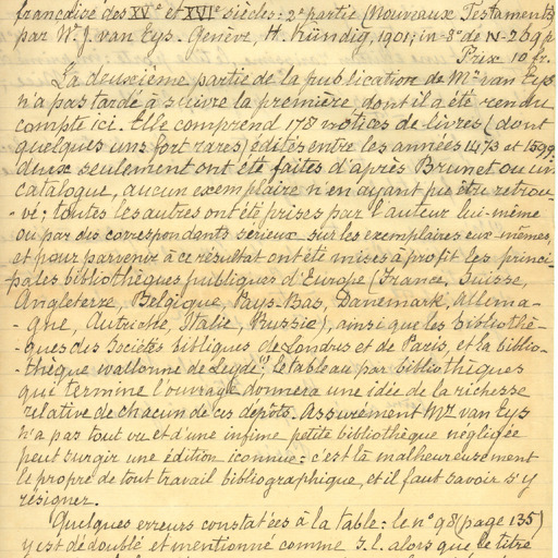 89. EYS, Mathilde van - Bibliographie des Bibles et Nouveaux Testaments en langue francaise des XV et XVI. siecles par W.J. van Eys (1902)