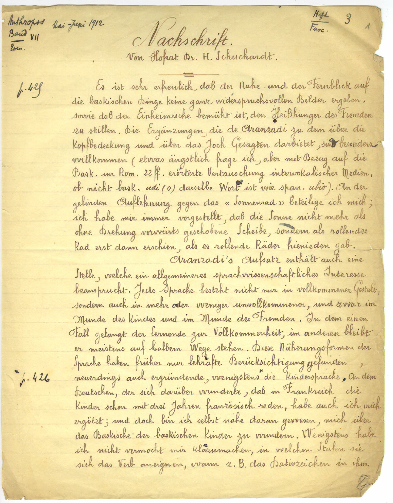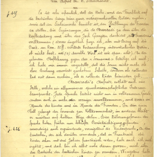 23. SCHUCHARDT, H. - Nachschrift (Aranzadi: de cosas y palabras vascas)