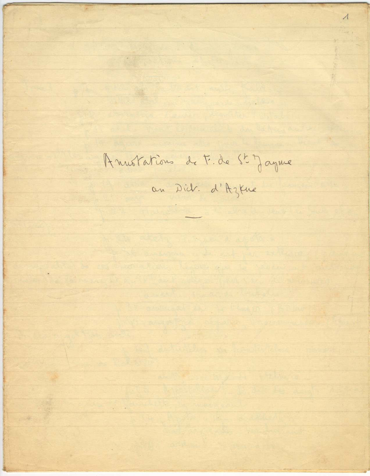 - 67. LACOMBE, G. - Annotations de F. de St. Jayme au: 2. Dict. d’Azkue