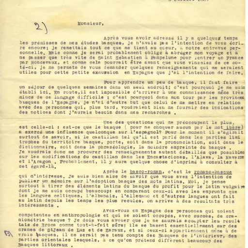 82. LACOMBE, G. - Hugo Schuchardtek A. Campion-i egindako gutunen kopiak