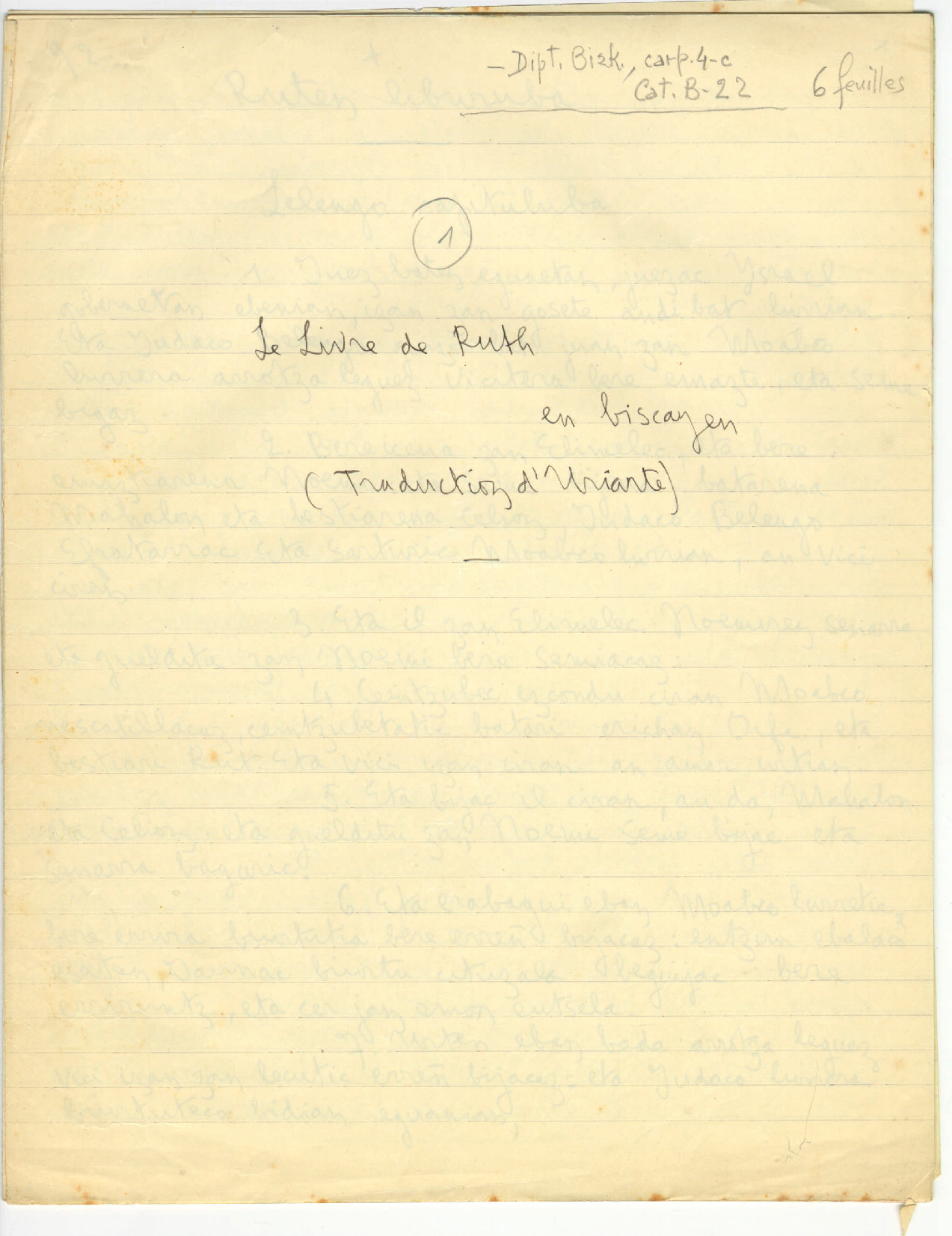 85. LACOMBE, G. - Bonaparte fondoetako kopiak: 1. Le livre de Ruth en biscayen