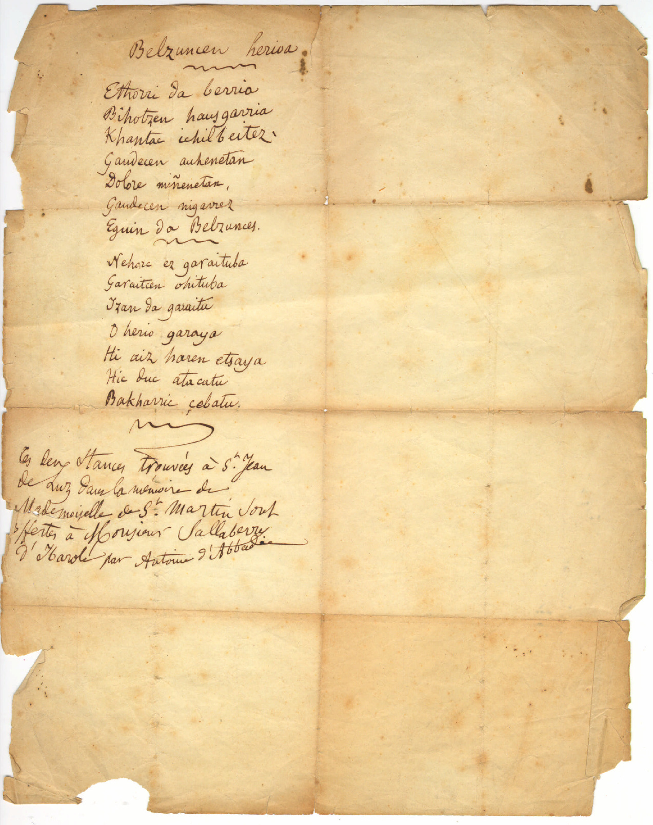 1. ABBADIE, Antoine - Belzuncen herioa (olerkia)