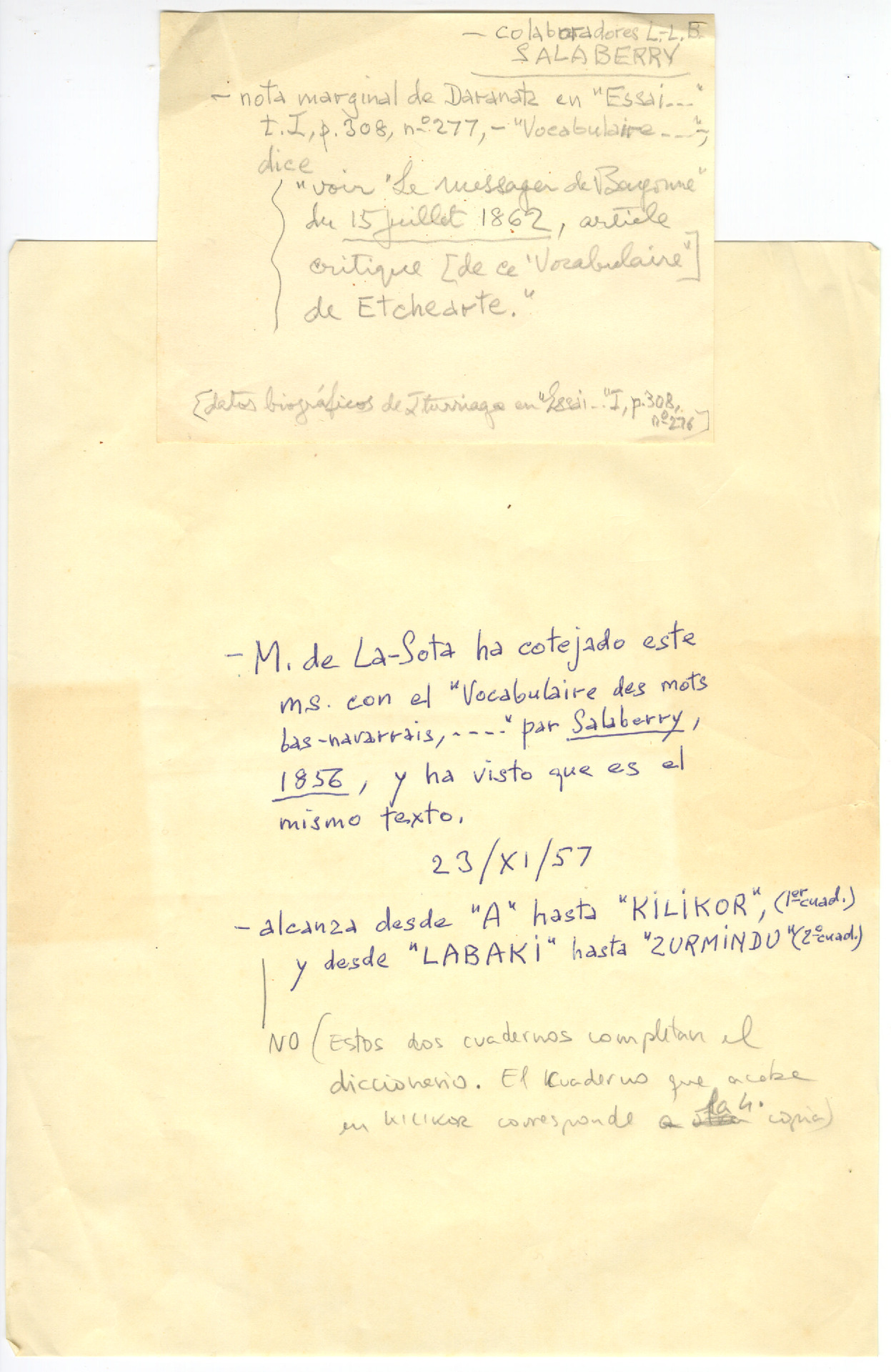 - 21. SALABERRI, J. - Vocabulaire de mots basques. Avant propos, A-Zuzi