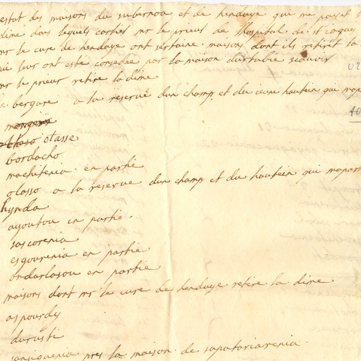 - 30. 17??. Zubernoa eta Hendaiako etxeen izenen zerrenda. Hospitaleko prioratoaren ordainketaz