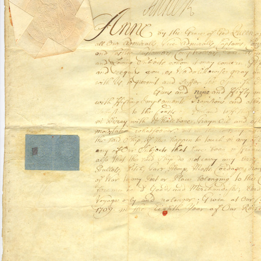 33. 1709. Ana Stuart Erreginak, Santiago Ansotegi kapitainari baimena balearen arrantzarako Irlandako Kostaldean