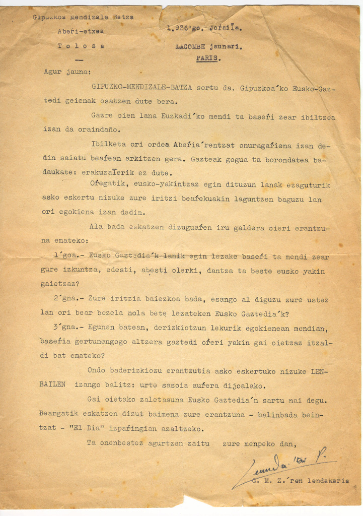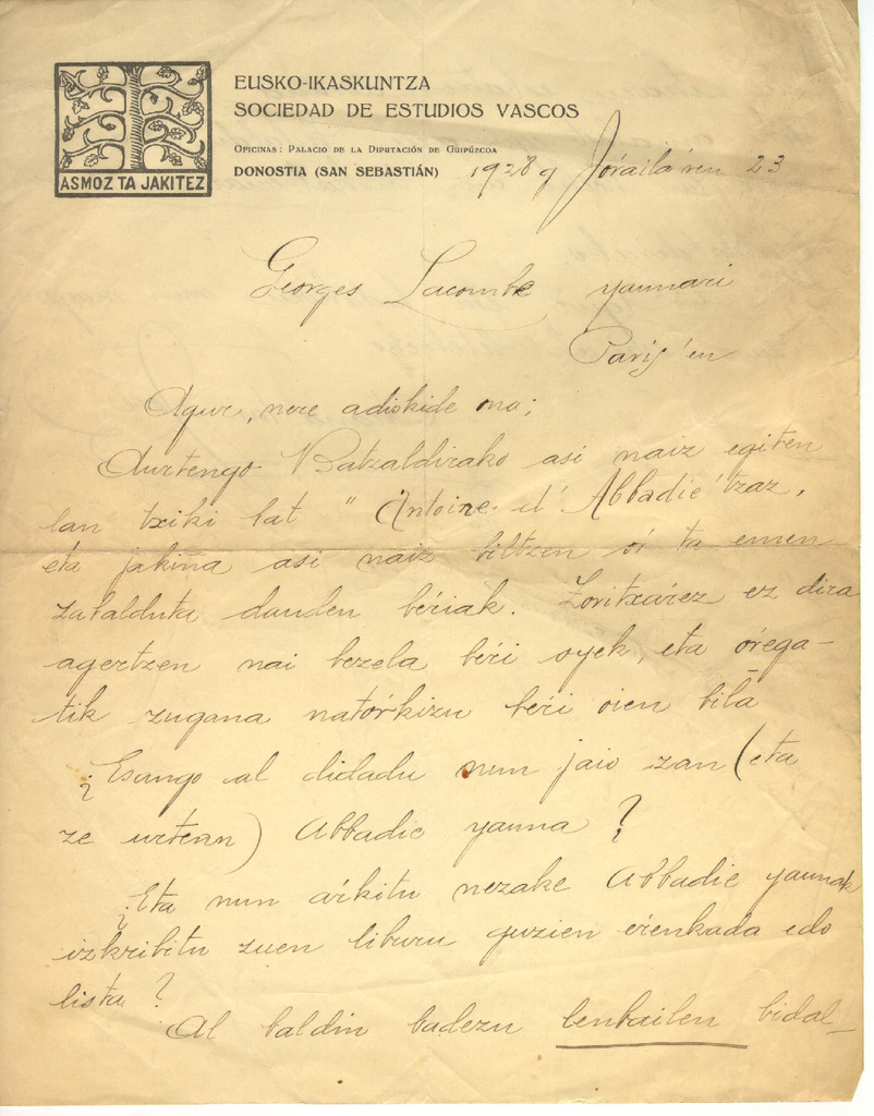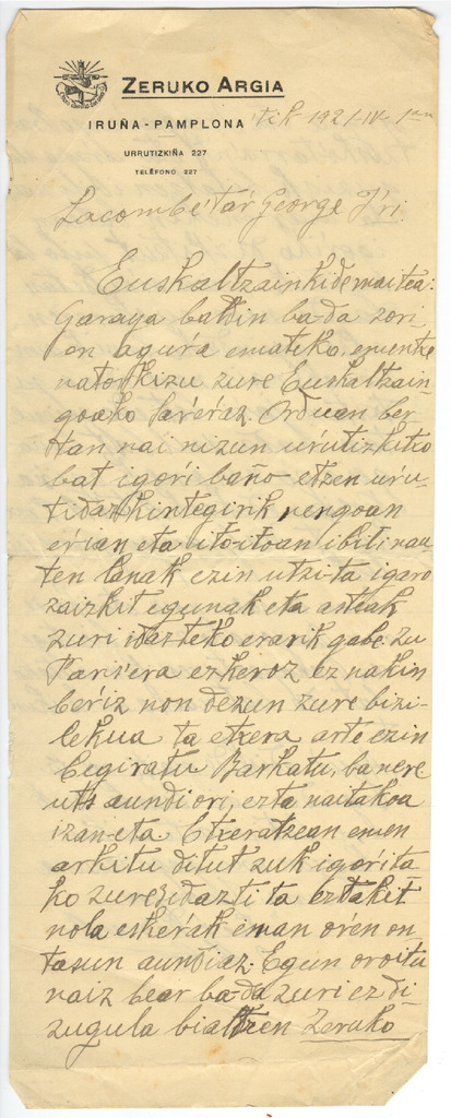 1. AMEZAGA, Vicente - George Lacomberi gutunak 194?