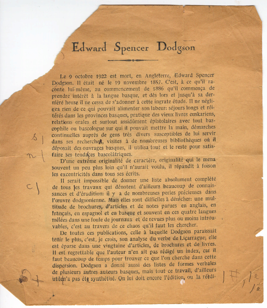 6. LACOMBE, G. - Vinson-en nekrologia. Euskal atsotitzak eta errefrauak (Sorbonarako?)(1927)