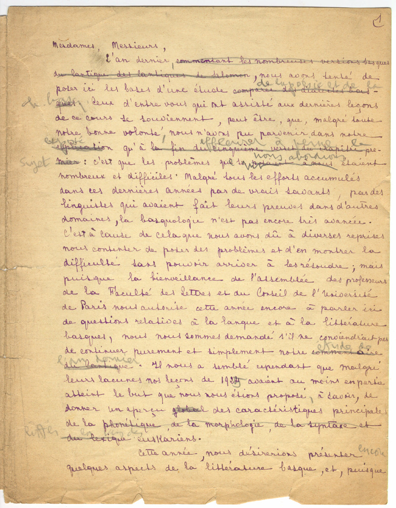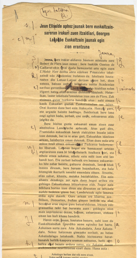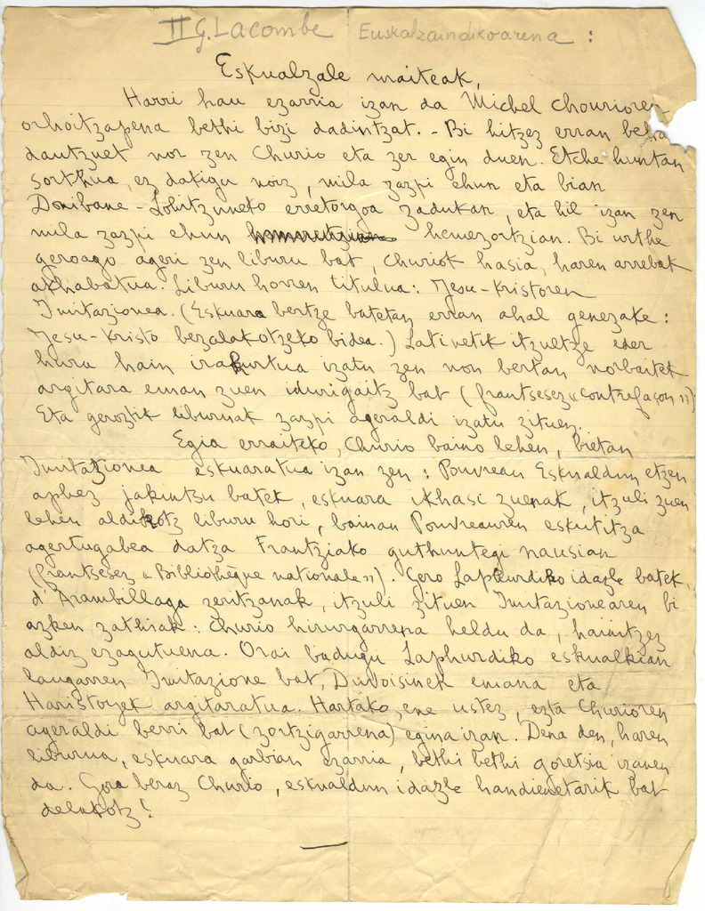 10. LACOMBE, G. - Euskal poesia eta kantutegiei buruzko hitzaldia (Sorbonarako?)