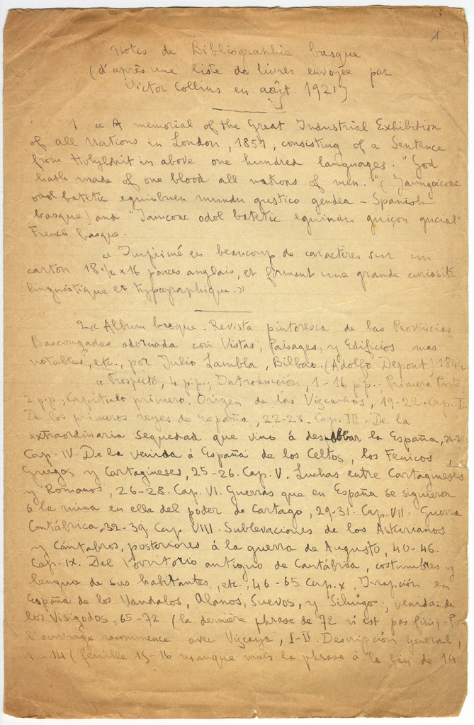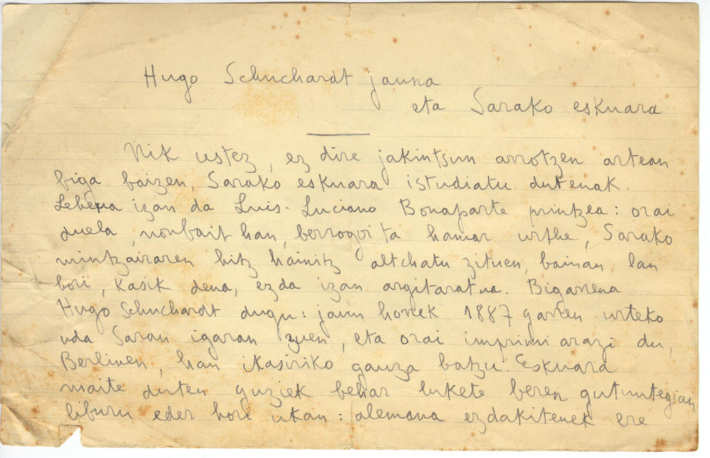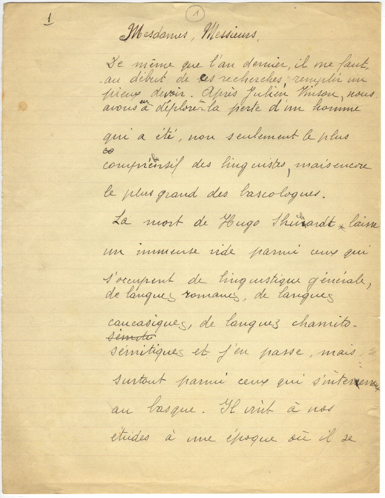 9. LACOMBE, G. - H. Schuchardt-en nekrologia. Euskal poesia eta kantagintzari buruzko hitzaldia (Sorbonarako?)(1929)