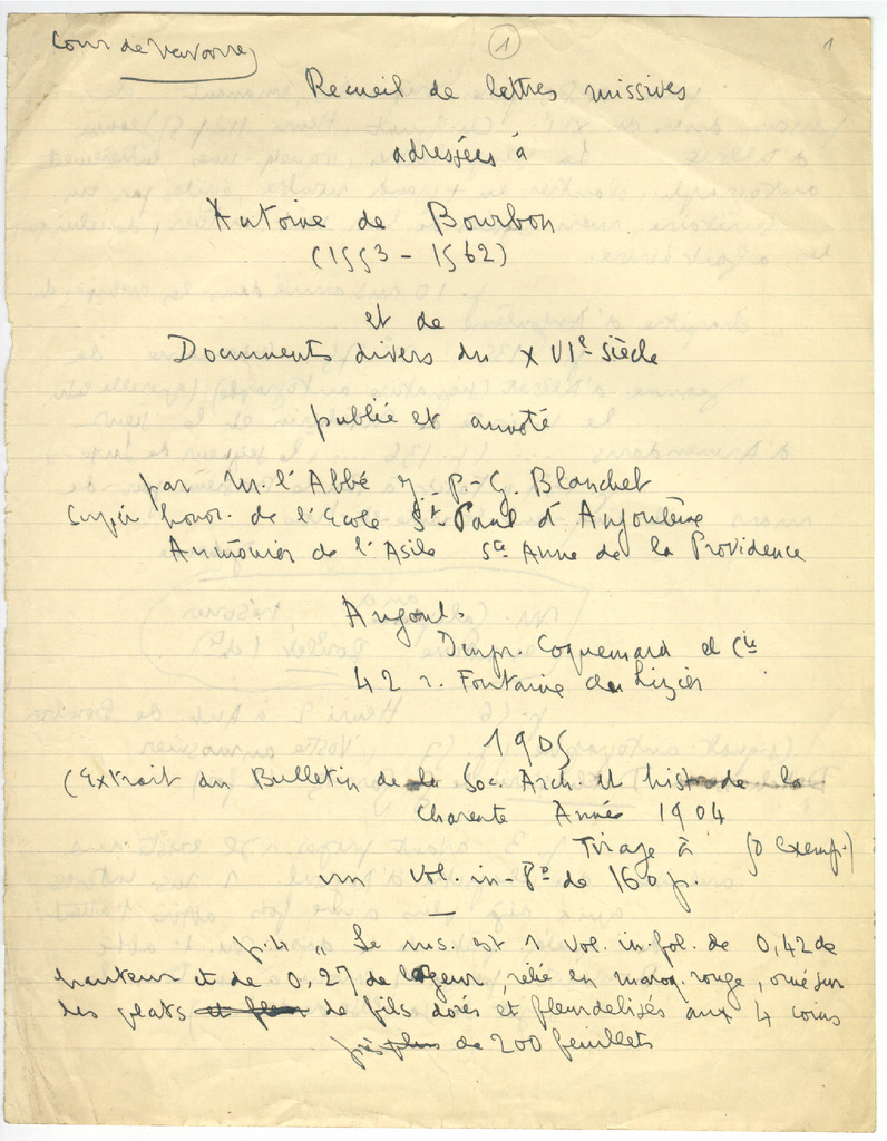 23. LACOMBE, G. - Ohar bibliografikoak: 1. Recueil de lettres addressées a Antoine de Bourbon (1553-1562)