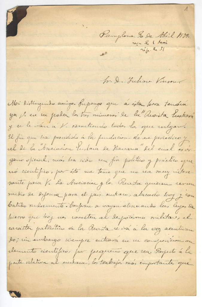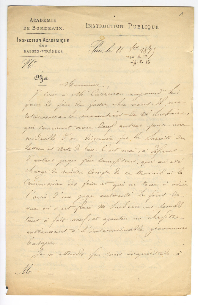 1. ABBADIE, Antoine - J.Vinson-i gutunak 1874-1892