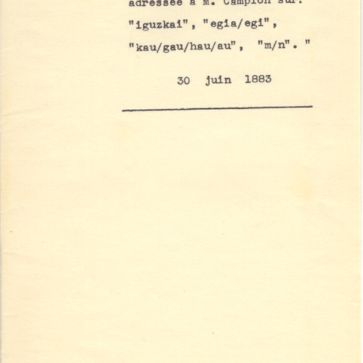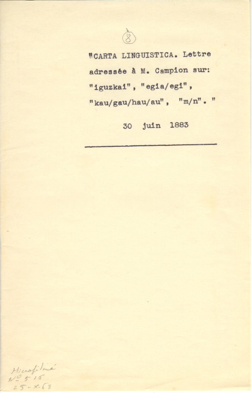 - BONAPARTE, L.L.- Arturo Campioni bidalitako lanak: 8. Carta lingüística (1883.06.30)