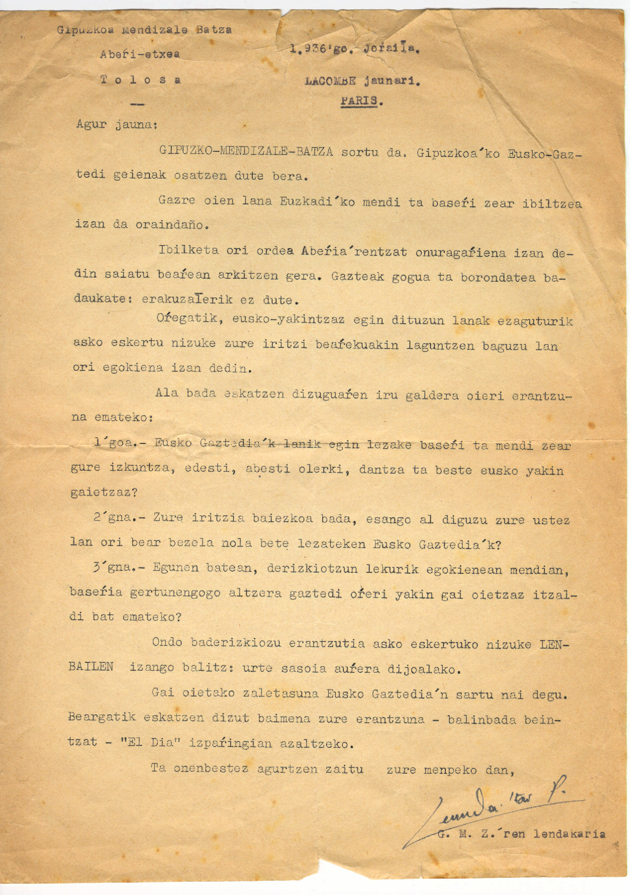 17. GIPUZKOA MENDIZALE BATZA - G. Lacomberi 1936