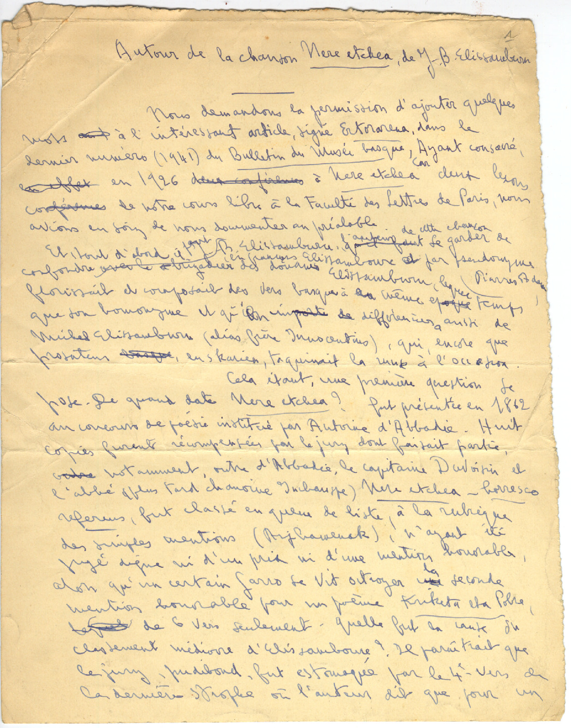 1. LACOMBE. G. - Autour de la chanson “Nere etchea” de J.B.Elissamburu