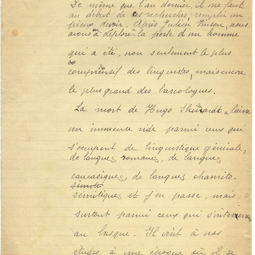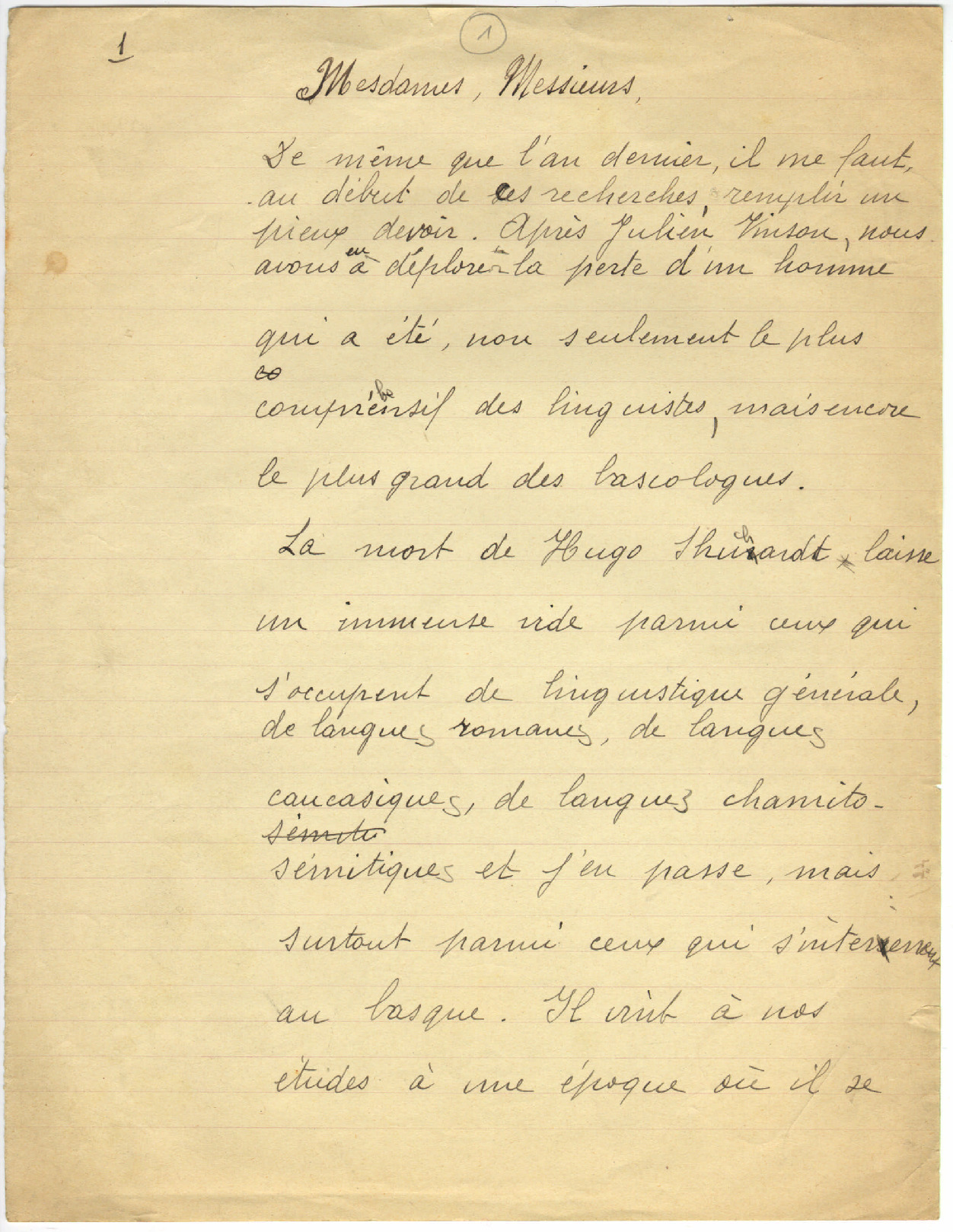 - 9. LACOMBE, G. - H. Schuchardt-en nekrologia. Euskal poesia eta kantagintzari buruzko hitzaldia (Sorbonarako?)(1929)