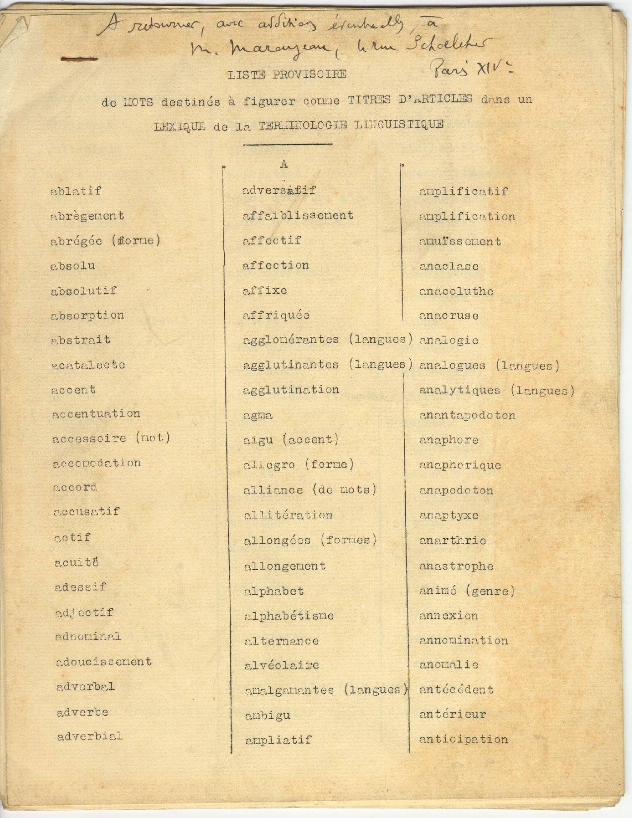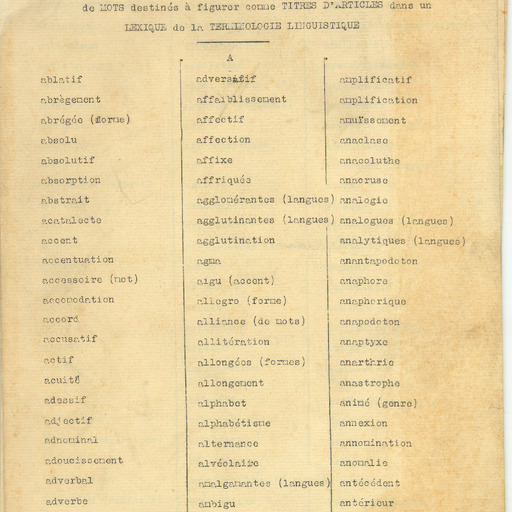 21. LACOMBE, G. - Marayeau, M.: Liste provisoire de mots destinés a figurer comme titres d’articles dans un lexique de la terminologie linguistique