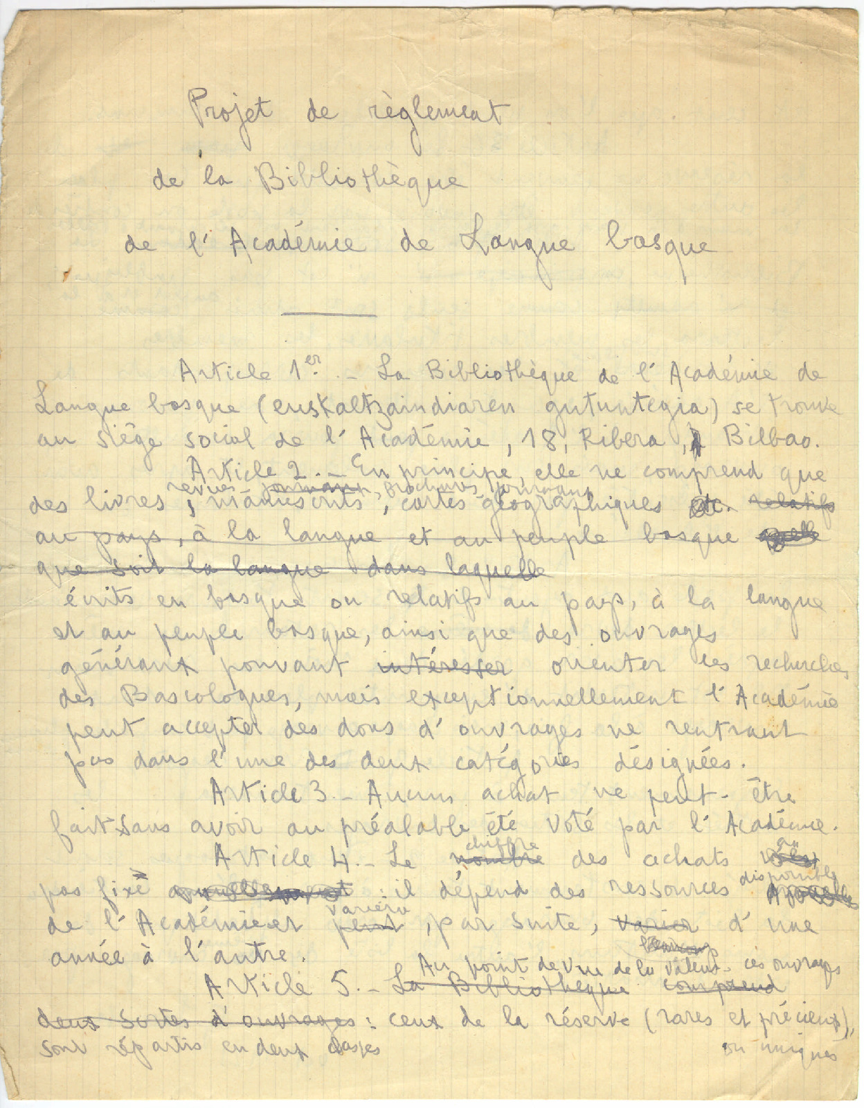 - 27. LACOMBE, G. - Projet de reglement de la Bibliotheque de l’Academie de Langue Basque