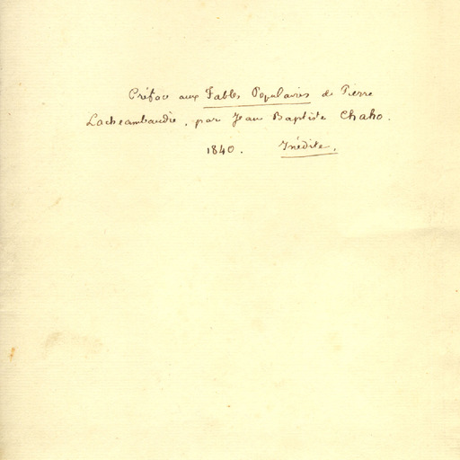 15. XAHO, Jean Pierre - 4. Préface aux “Fables Populaires” de Pierre Lachambeaudie. 1840
