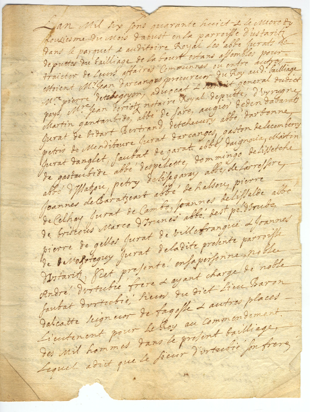 12. 1648. Uztaritzeko Biltzarrak, André Urtubiarekin lurren erabileretaz