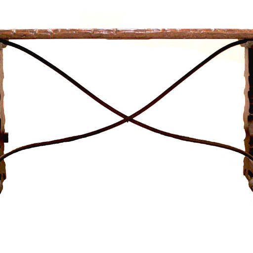 - en Walnut table with iron supports