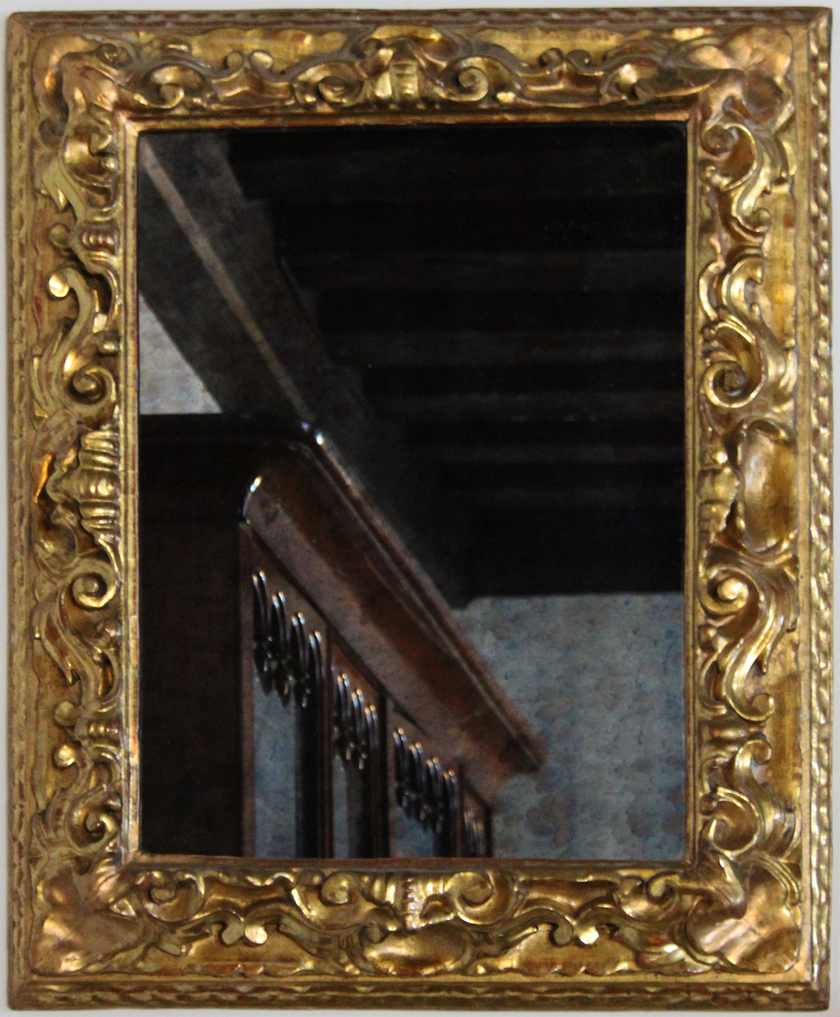Ispilu bikotea marko urreztatuekin, landare-formak sortuz zizelkatuak. Kordoi formako bordura exterriorra.