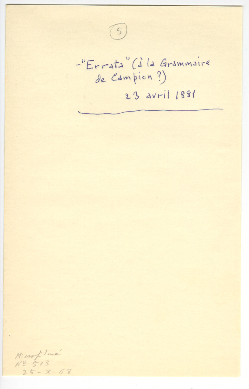 BONAPARTE, L.L.- Arturo Campioni bidalitako lanak: 5. Errata